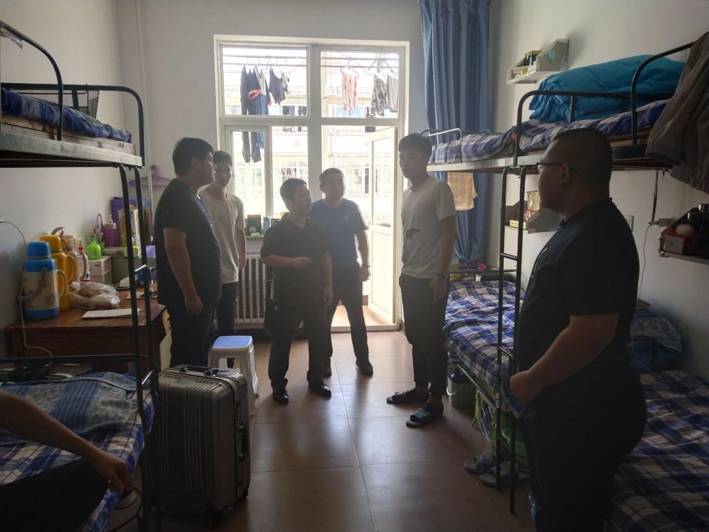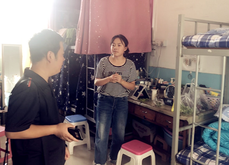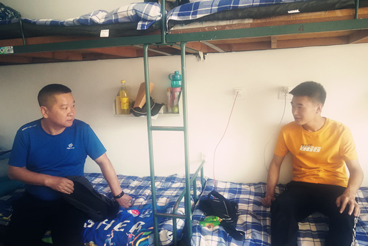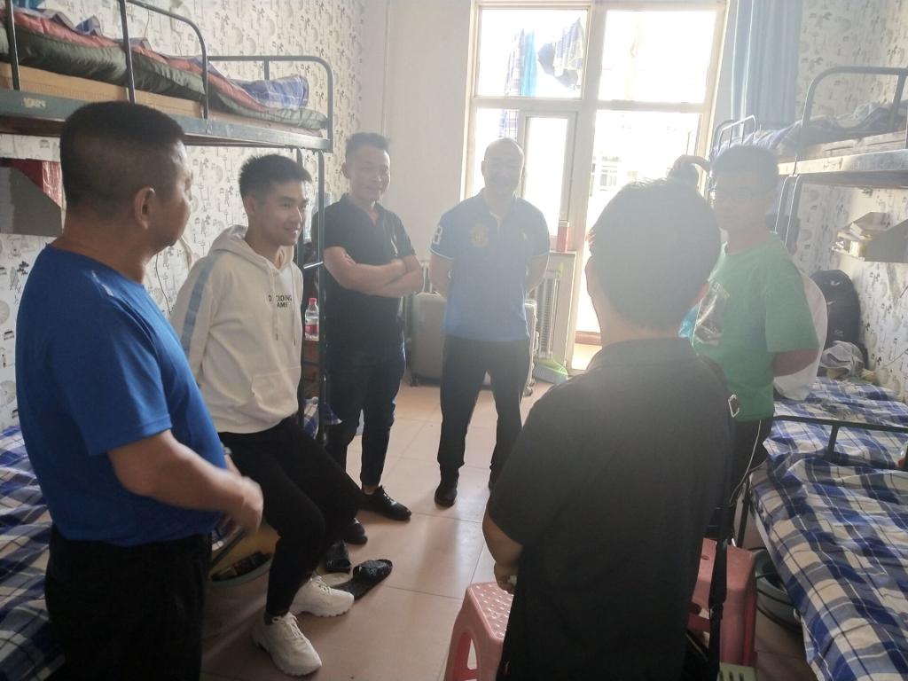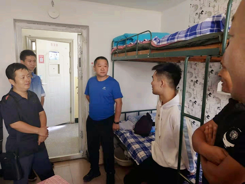 在新生宿舍,公司领导与员工及部分员工家长亲切交谈,询问大家来自哪里,入学报到是否顺利,是否适应公司的环境等事情,并仔细的检查了新生宿舍设施安全,对宿舍安全隐患排查,提醒员工注意上下铺安全,防骗防盗、拒绝推销等问题。