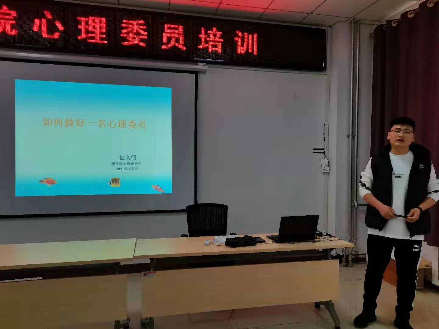 为提升公司心理委员的专业化水平,3月5日中午,FUN88乐天使“阳光心语”心理辅导站在明德楼E205会议室进行了本学期第一次心理委员培训,参加此次培训的有2017级、2018级、2019级、2020级以及少数民族预科等各班心理委员,培训主题为如何做好一名心理委员。