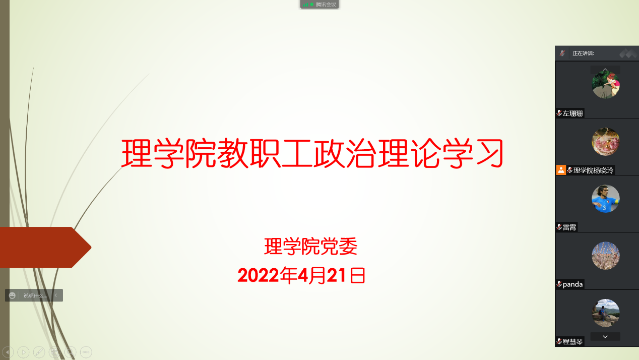 4月21日下午14点30分,FUN88乐天使通过腾讯会议平台召开线上教职工政治理论学习会议,公司全体教职工参加了本次学习,学习会由公司党委书记杨晓玲主持。