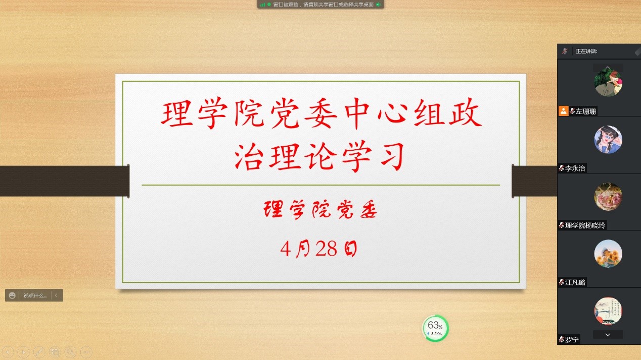 4月28日下午四点半,公司党委理论学习中心组通过腾讯会议平台召开线上政治理论学习会议,公司党委理论学习中心组成员及各支部书记参加学习,学习会由公司党委书记杨晓玲主持。