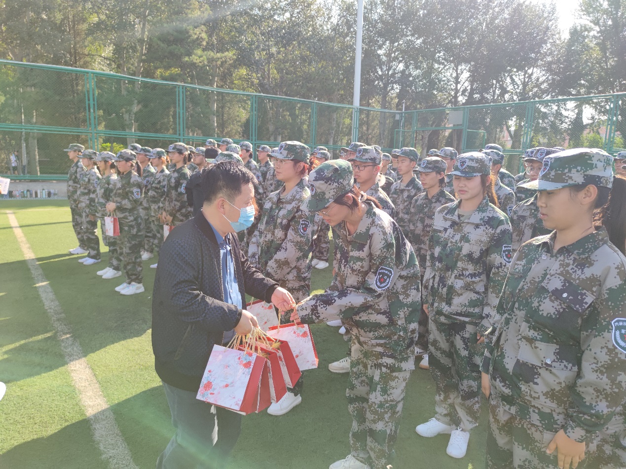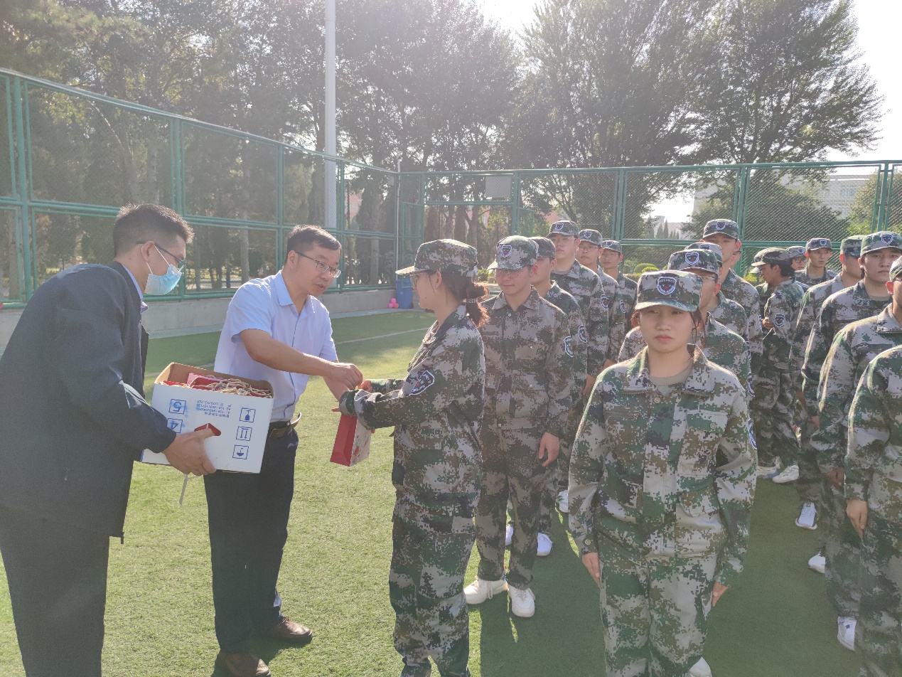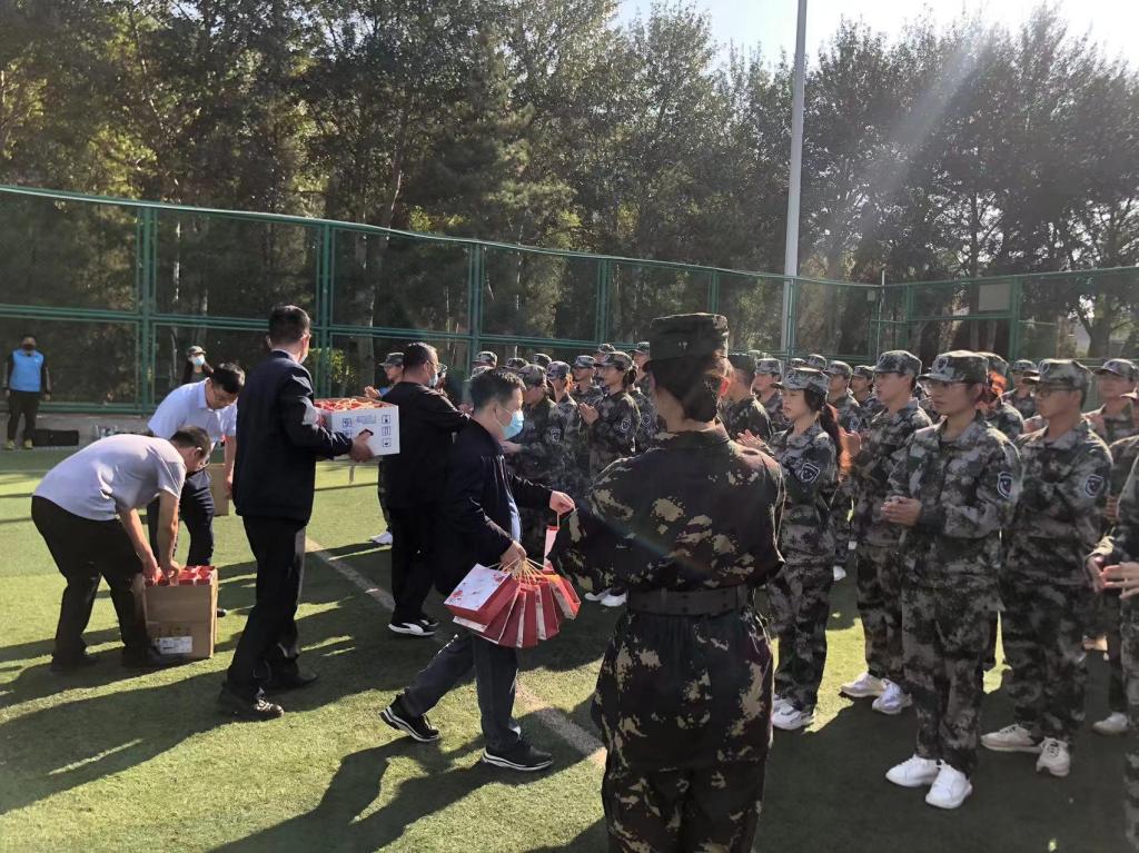 在二营军训场地,老师们观看了同学们的队形操练,对参训同学表达了关心与慰问,送上了节日的祝福,并提出了要求。随后,公司领导和老师们给参训同学和教官发放了中秋月饼等慰问品。参训同学齐声喊出“谢谢老师们,祝老师们教师节快乐”。随后大家合影留念。