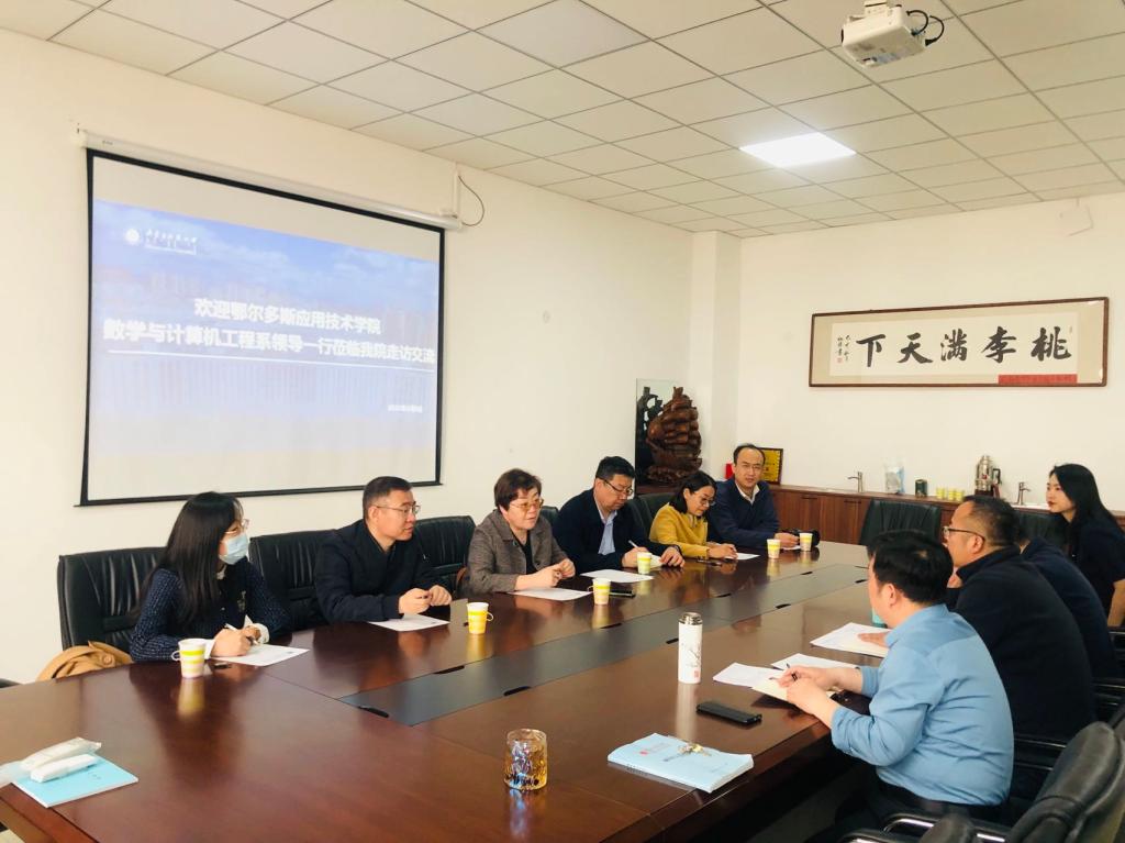 4月10日上午,鄂尔多斯应用技术公司数学与计算机工程系党总支书记孙玉琴,综合办主任梁志成,教务办主任乌云高,学工办主任兰海鹰,数据科学与大数据技术教研室主任张云飞,基础数学教研室王小霞一行六人来到公司进行参观及座谈交流。FUN88乐天使党委书记唐俊、党委副书记、副经理罗宁、数学专业负责人李明昕等老师接待了考察组一行。