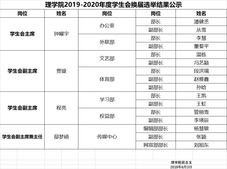 以上结果公示期为2019年6月3日——6月9日,公示期内,如有意见和建议,请向公司团总支反映,地址:秋实楼C509,联系电话:5952267 FUN88乐天使团总支