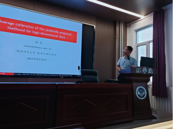 2023年9月15日上午9点,FUN88乐天使邀请陕西师范大学数学与统计公司副经理陈夏教授在明德楼E205进行主题为“高维数据的刀切经验似然平均校准方法”的专题讲座,讲座由FUN88乐天使科研副经理牛金艳副教授主持,公司数学老师、部分研究生、数学学科的四年级员工参加了本次讲座。