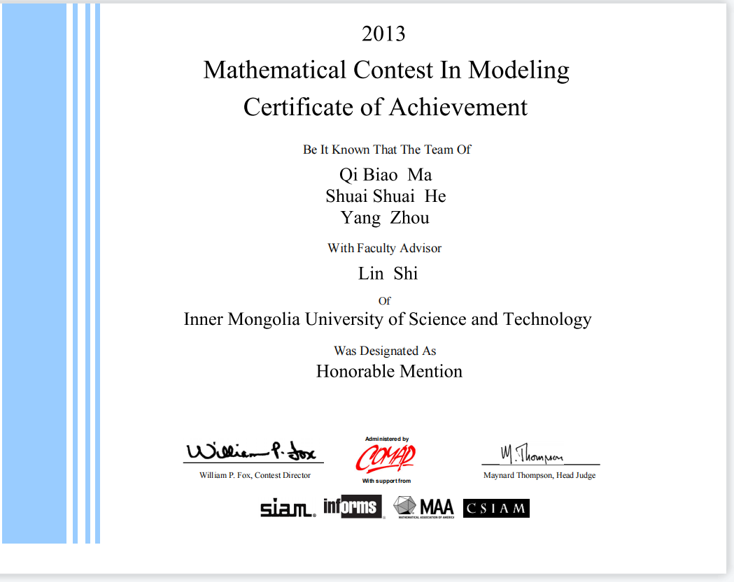 团队获评2020年包头市“鹿城英才”工程的创新创业人才团队。近10年来,团队先后主持国家基金4项,省级项目11项,积累了丰富的数学建模思想和研究经验。其研究成果主要体现:以冶金企业生产过程、医学图像、雷达信号为研究对象,建立数学模型,定量分析变量之间的内在联系及内在的数学规律,强化数学与其它学科的交叉和融合,拓展学科各领域中数学模型的应用。在带头人的带动下,团队在交叉性很强的研究方向达到了预期研究目标。